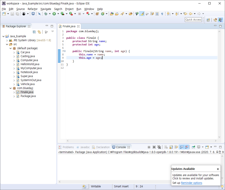 먼저 FinalA라는 클래스를 만들고 소스 코드를 입력합니다.