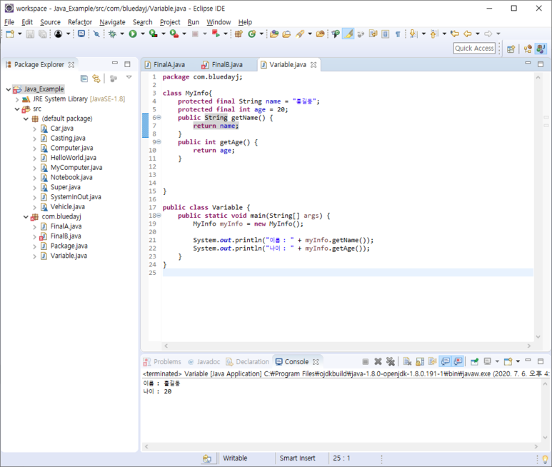 예제를 보도록 하겠습니다. Variable 클래스를 생성합니다.