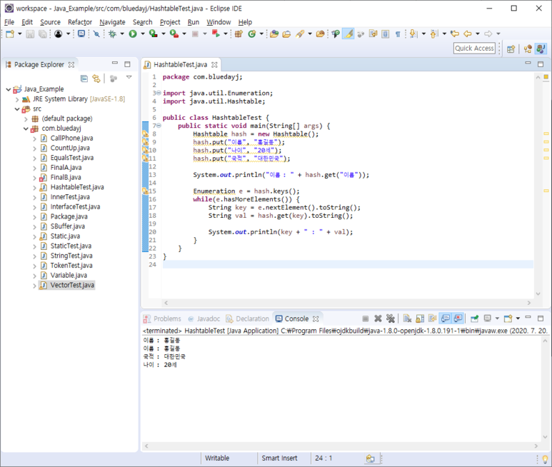 hash.put("국적", "대한민국");