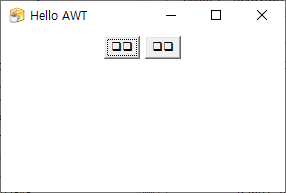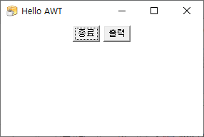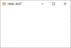 왼쪽 화면 처럼 너비 300, 높이 200의 Hello AWT라는 제목을 가진 프레임이 생성된 AWT가 실행되는 것을 확인할 수 있습니다.
