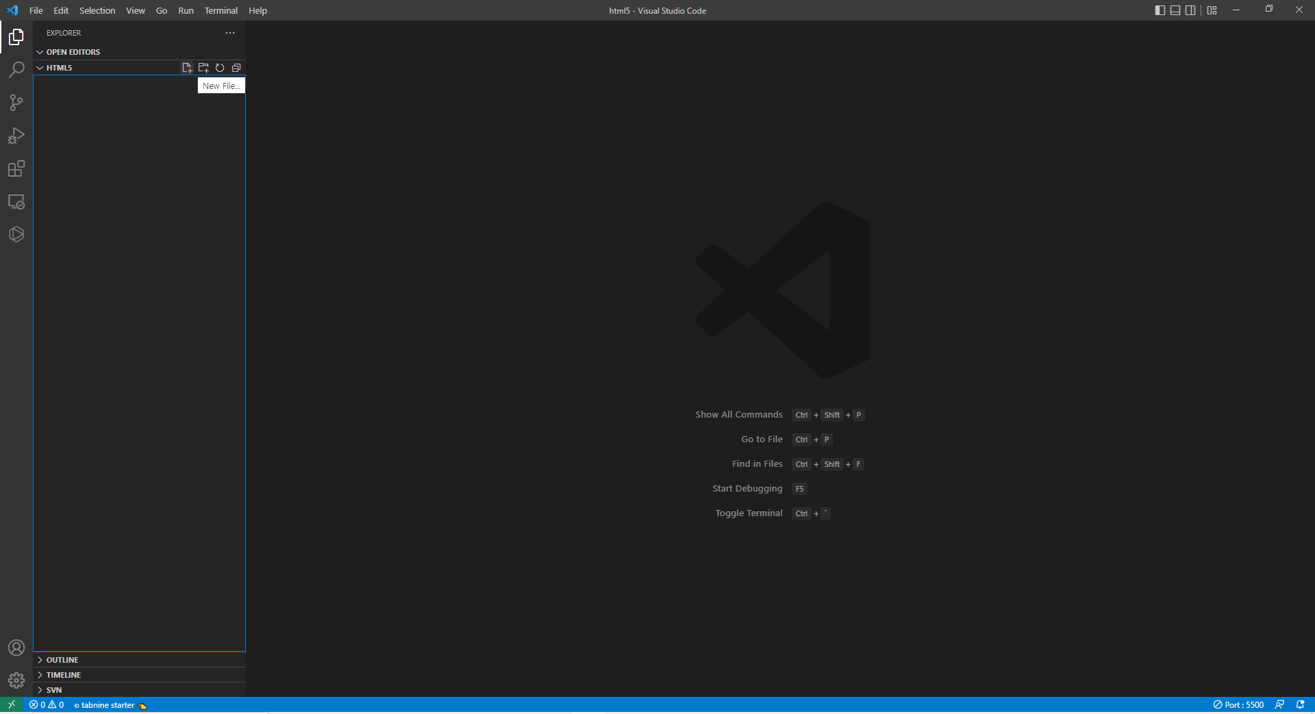 화면의 왼쪽에서 File > New file 를 선택한 후 파일명.html를 생성합니다.