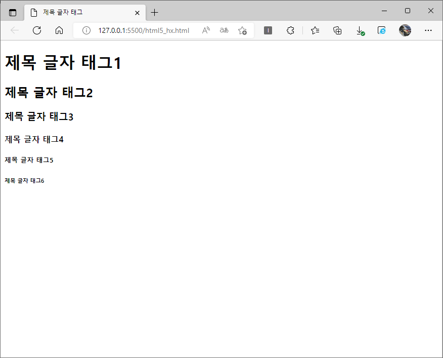 <h1>제목 글자 태그1</h1>