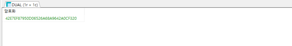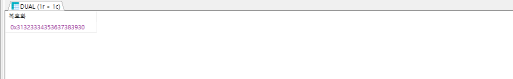 SELECT AES_DECRYPT(UNHEX('42E7EF87950D06526A68A9642A0CF320'), 'KEY') 복호화 FROM DUAL;
